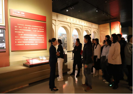 在延安革命纪念馆,师生党员跟随讲解员全面深入学习了中共中央在延安十三年领导全国革命走向胜利的光辉历史。面对鲜红的党旗,师生党员高举右拳、重温入党誓词,接受思想洗礼、叩问初心使命。