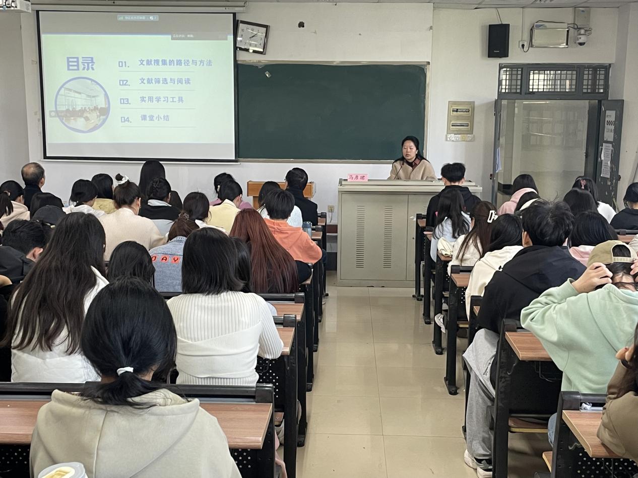 马彦珺以论文写作实际需求为开场白,一下子抓住了学生的眼球,主要从知网强大的数据库资源、使用与功能、文献搜集路径与方法、文献筛选与阅读、实用学习工具等方面向同学们一一阐释,并以进入学校图书馆官网为例,展示了我校各种数字资源,实际演示了知网的各种检索、筛选、查重与阅读相关文献等使用技巧,以及“知网移动客户端——全球学术快报”使用方法。讲座以提问方式和同学们进行了热烈互动,并发放了奖品。