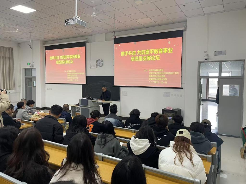 11月1日,“携手并进 共筑富平教育事业高质量发展论坛”在富平校区举行。此次论坛由富平县教育体育局,我校美术学院、校地合作与校友工作处、教务处联合举办,汇聚了来自富平县各中小学的美术、书法专业教师以及教育领域的专家学者,共同为富平教育事业的未来发展献计献策。