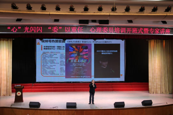 11月18日,我校在陶然楼演艺厅举行心理委员培训开班式暨专题讲座。开班仪式由学生工作部副部长、大学生心理健康教育指导中心主任刘原主持。