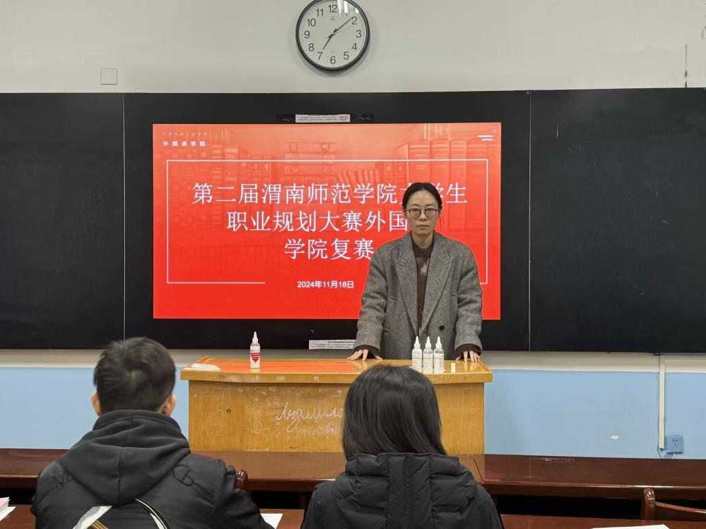 11月11日至18日,外国语学院举办第二届渭南师范学院大学生职业规划大赛院级初赛及复赛。本次大赛由各年级辅导员担任评委。外国语学院辅导员姜皖迪担任主持人。