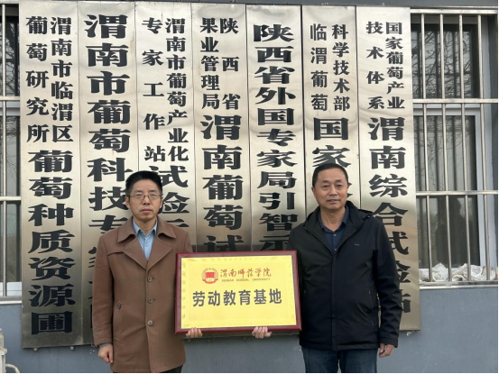 12月4日,马克思主义学院与渭南葡萄研究所携手共建了大学生劳动教育基地。渭南葡萄研究所所长王录俊、马克思主义学院党总支书记赵国峰和院长张萍共同出席了挂牌仪式。