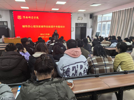 12月13日下午,我校举办“当代大学生心理的深度认识与心理工作开展”培训。全体专兼职辅导员、心理专兼职教师共计八十余人参加培训。