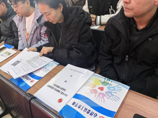 培训开始前,学生工作部副部长马耀斌就此次培训内容做简要说明,并向参训教师发放学生工作部自编的《心理委员工作手册》和培训配套的《辅导员心理深度辅导技能提升专题培训班讲义》。
