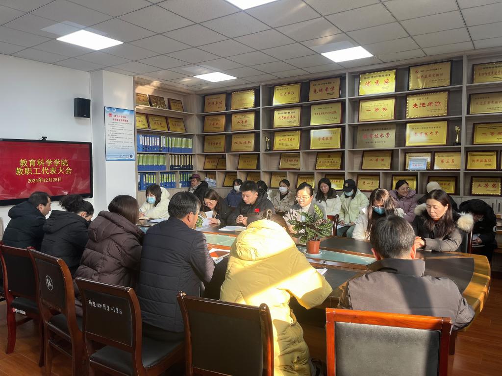 12月25日下午,教育科学学院召开二级教职工代表大会,会议由教育科学学院党总支副书记马雷蕾主持。