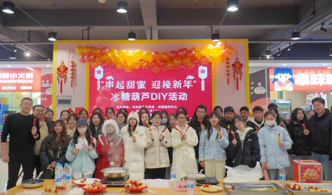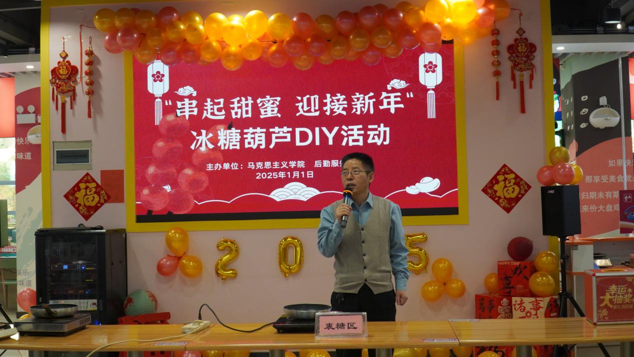 2025年1月1日下午,马克思主义学院联合后勤服务中心在二餐二楼举办了“串起甜蜜,迎接新年”冰糖葫芦DIY活动。学院党总支书记赵国峰、院长张萍、副书记肖飞及全体辅导员与同学们一起欢度新年,共同沉浸在甜蜜的海洋中。