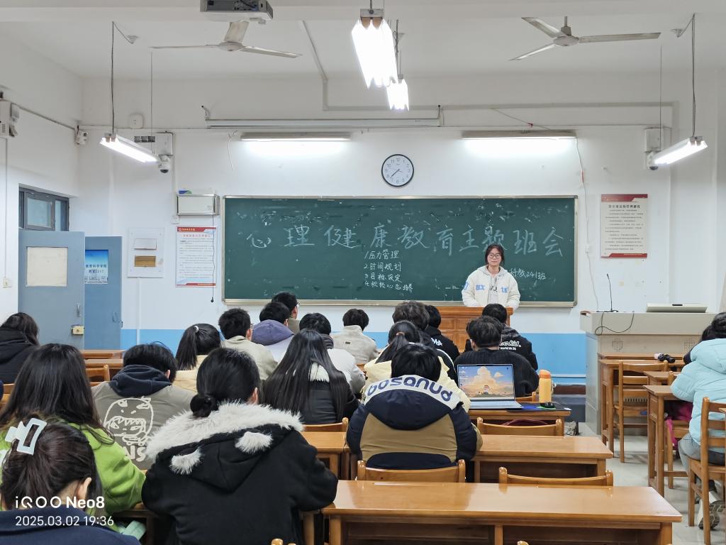 各班辅导员开展主题班会,采取线上线下多种形式。各班通过观看主题微课,学习心理健康知识。围绕“压力”话题,将其以“三步释压”呈现出来,使同学们对于压力有更清晰的认识;其次通过提供五个自我约束进行科学有效时间管理的妙招,帮助同学们按时完成学习计划;通过讨论心理学原理,促进同学们从认知到行动的转变;最后总结四中负面思考,助力同学们健康成长。