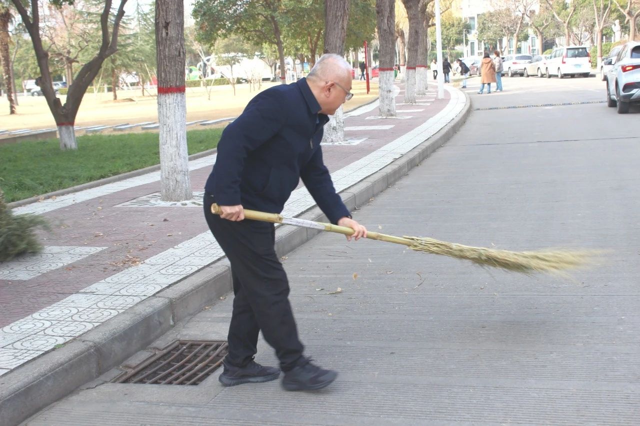 在全体人员的不懈努力下,校园内的落叶和垃圾得到了重点清理,校园卫生实现了无死角。