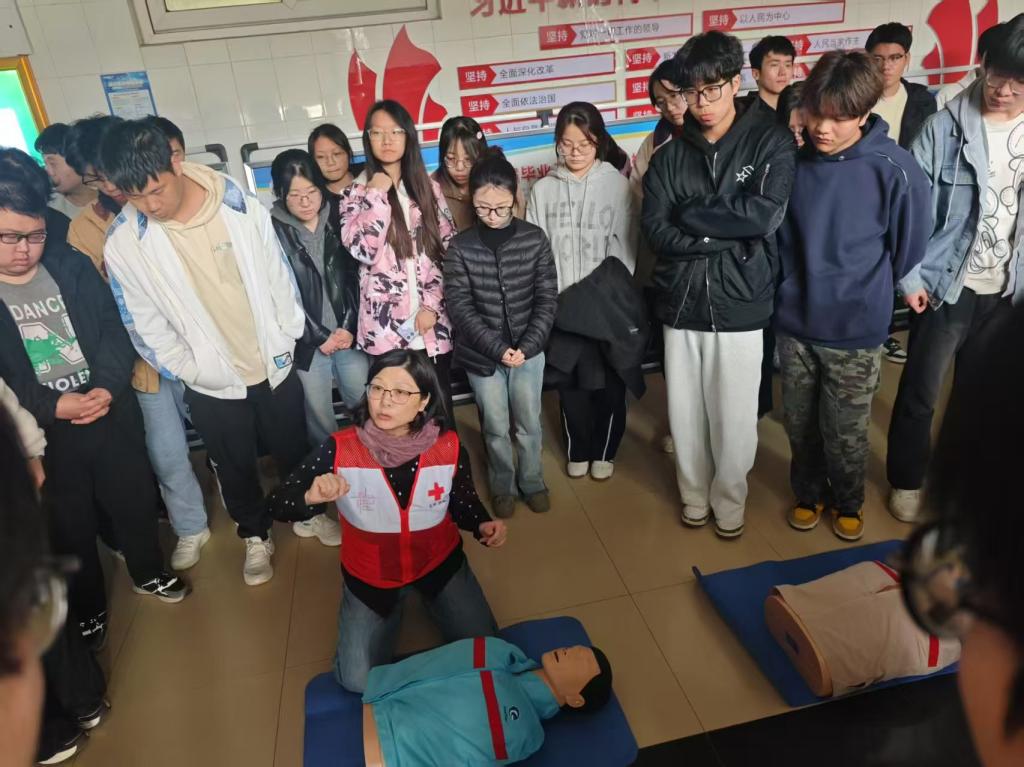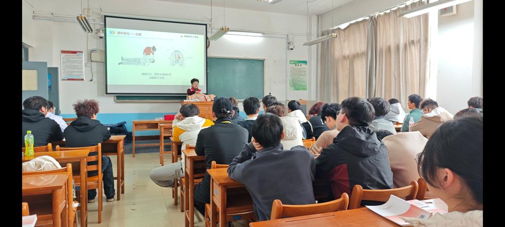 此次培训活动共分为理论教学、实践操作、急救考核三个部分。活动伊始,渭南市红十字会的专家通过真实案例和数据分析,向师生们强调了学习急救技能的重要性,“心搏骤停的黄金救援时间仅有4分钟,掌握正确的急救方法,就可能挽救一条生命!”。渭南市红十字会的专家团队结合视频演示,系统讲解了心肺复苏的操作流程、AED设备的使用规范,以及气道异物梗阻的急救方法。