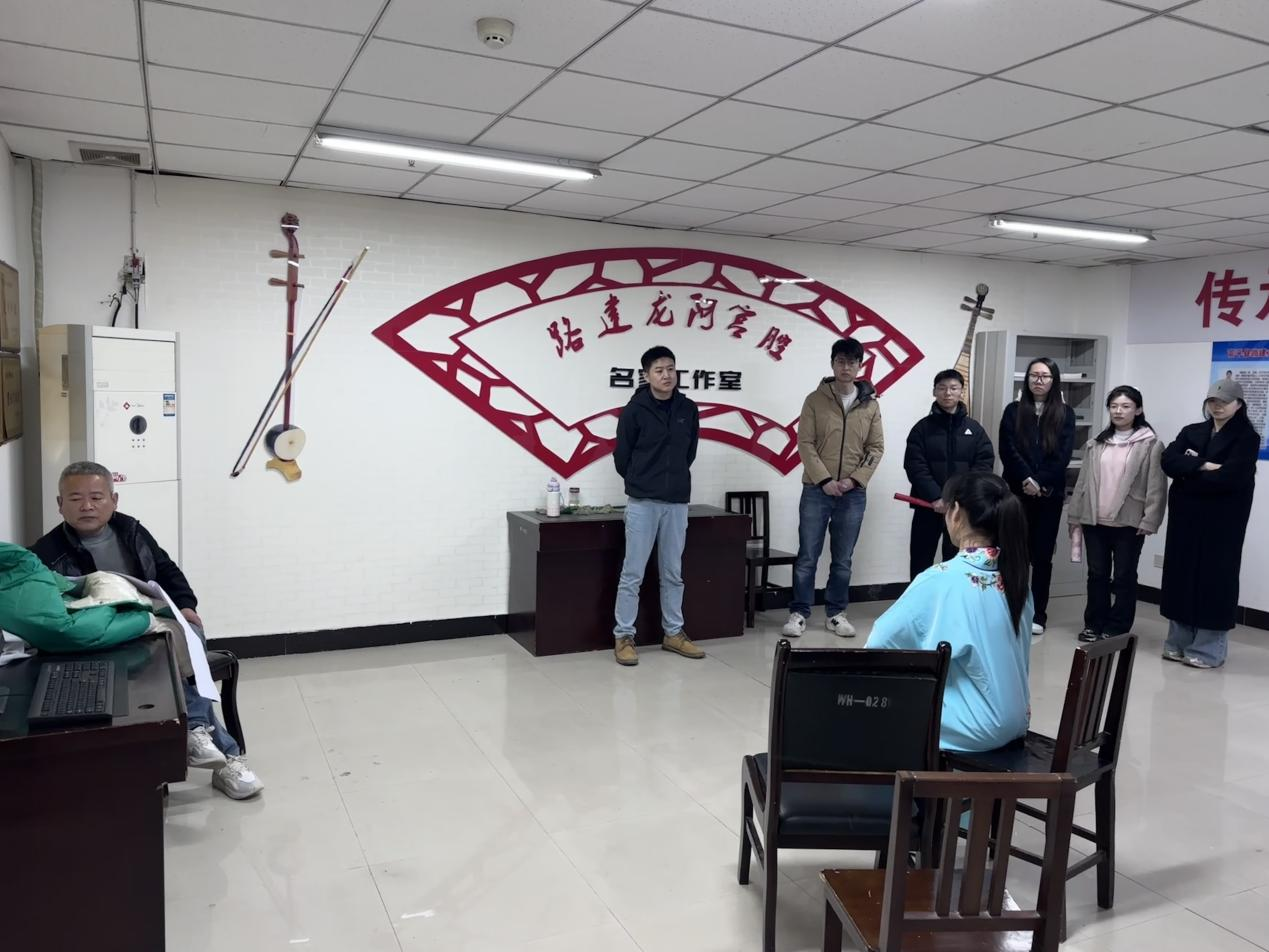 随后,师生们走进富平阿宫腔剧团,近距离体验国家级非物质文化遗产的魅力。剧团演员现场展示了阿宫腔的经典唱段《锁麟囊》《白蛇传》等,并从唱腔、表演、音乐伴奏等多个方面进行了细致讲解和示范。学生代表贺静说道:“阿宫腔的旋律起伏像田野里蜿蜒的沟壑,自由又充满张力,演员的音色醇厚且具有穿透力,这和我们在学校里接触较多的西方音乐完全不一样,这次采风活动不仅加深了我对传统戏曲艺术的理解和热爱,更为我的硕士毕业论文选题提供了新的思路和方向。”孙长宝同学表示,在采风期间深刻感受到了阿宫腔传承的不易,阿宫腔作为国家级非物质文化遗产,是民族艺术文化的重要组成部分,音乐专业的学生肩负着传承与创新的使命,有责任和义务让古老的民间艺术瑰宝在新时代绽放光彩。