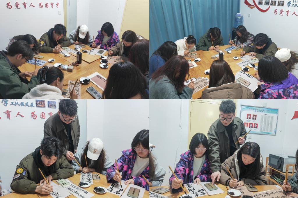 活动中,辅导员李思凡指导2024级美术学专业、学前教育专业学生进行书法创作。同学们挥毫泼墨,书写各自喜爱的经典古诗古文,将所掌握的书写技巧与个人情感都融入到作品中,呈现出风格多样、精彩纷呈的艺术气息。
