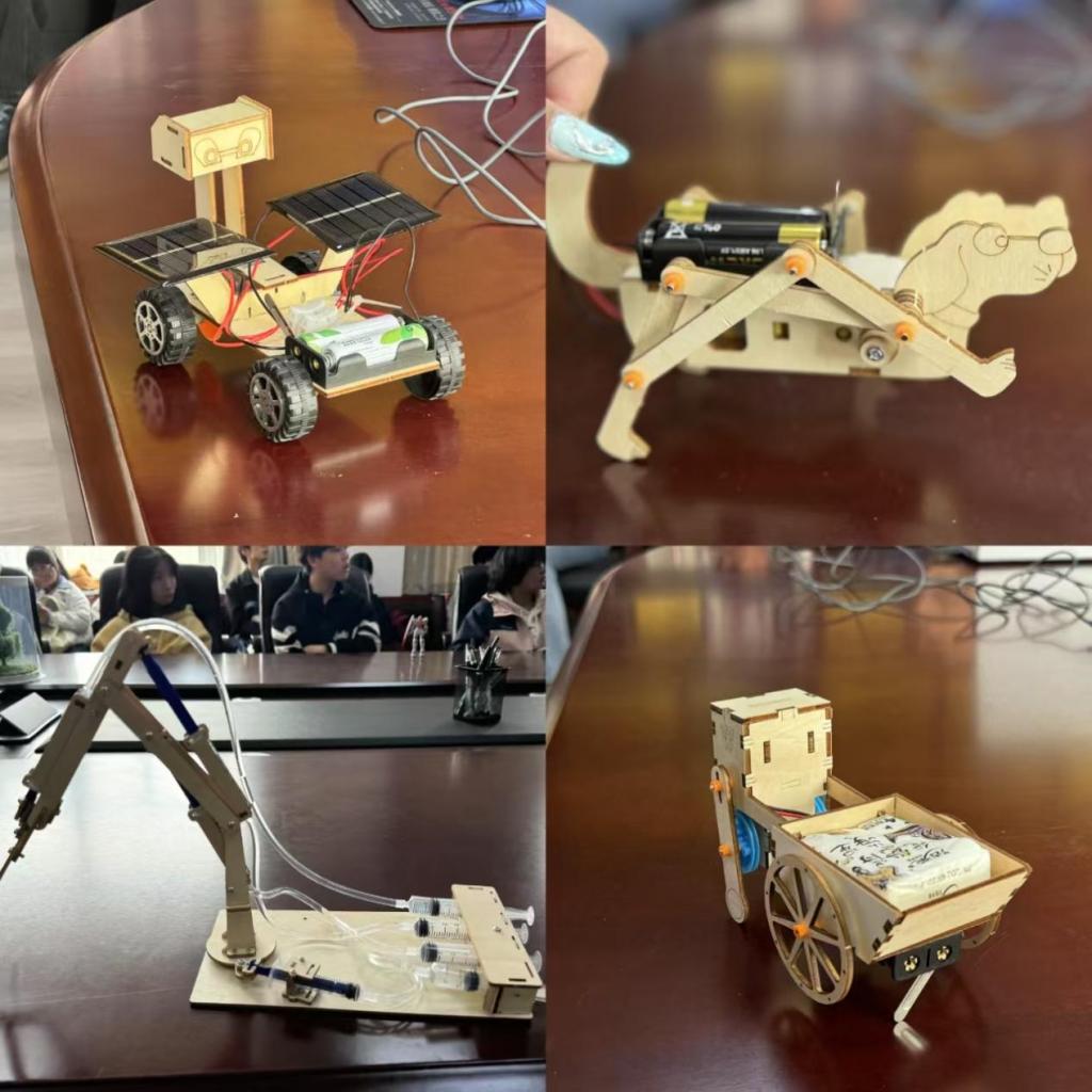 “太阳能小车”“机械小狗”“液压机械臂”“仿生推车”等作品凭借满满的科技感尤其引人注目。
