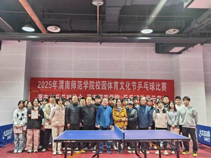 4月2日,2025渭南师范学院校园体育文化节乒乓球比赛顺利完赛,下午14时,渭南市乒乓球协会与本次比赛前30名运动员,师生见面会在云帆体育馆隆重举行。渭南市乒乓球协会主席雷孟斌、副主席刘晓峰、副秘书长张莉、体育学院党总支书记李春兰、院长王居海,教师秦华、雷玉雅楠参加活动。