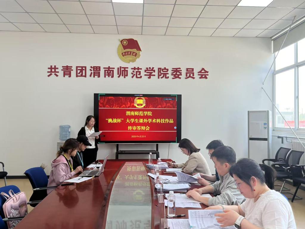 4月23日下午,我校在渭师青年之家会议室举办第十五届“挑战杯”大学生课外学术科技作品竞赛终审答辩会。