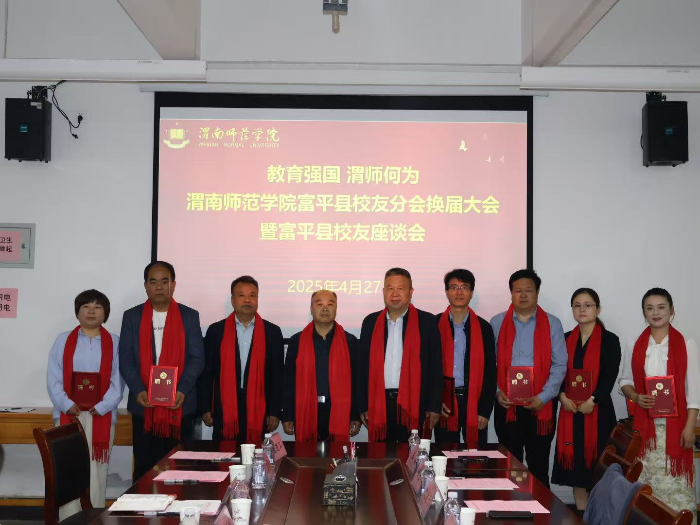 会上,与会人员观看了学校宣传片。周德锋宣布《渭南师范学院校友总会关于富平校友分会第二届组织机构人员组成的批复》,经全体校友审议表决,岳忠任第二届会长,贺同星、刘占民等9人组成新一届领导班子。卢爱刚为富平校友分会组织机构人员颁发聘书。