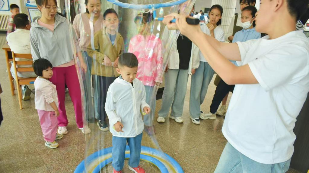 空气大炮前,孩子们瞪大好奇的双眼,当看到一阵“狂风”突然袭来,吹散层层搭叠起来的纸杯时,惊呼声与欢呼声此起彼伏。在电磁小火车的展示区,小火车在导轨上呼啸而过,仿佛拥有魔法般的力量。消失的你实验更是充满了神秘色彩,当人走进特定装置后瞬间“隐身”,引得周围观众啧啧称奇。会倒退的小车也收获了超高人气,推动一下,小车却反向行驶,违背直觉的运动方式引发了大家的深思。无敌风火轮前更是热闹非凡,孩子们亲手参与制作简易装置,在志愿者的引导下,看着风火轮飞速转动,感受气流与压力差共同作用下的动力奇观,玩得不亦乐乎。