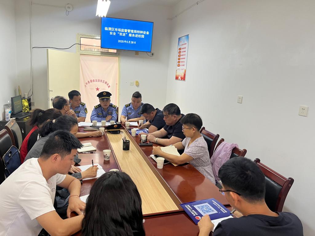 5月28日,后勤服务中心邀请渭南市临渭区市场监督管理局开展特种设备安全“双送”服务进校园活动。渭南市临渭区市场监督管理局特设股股长李卫峰,站南市场监督管理所党支部书记马强、副所长雷永红;学校特种设备使用单位相关人员参会。