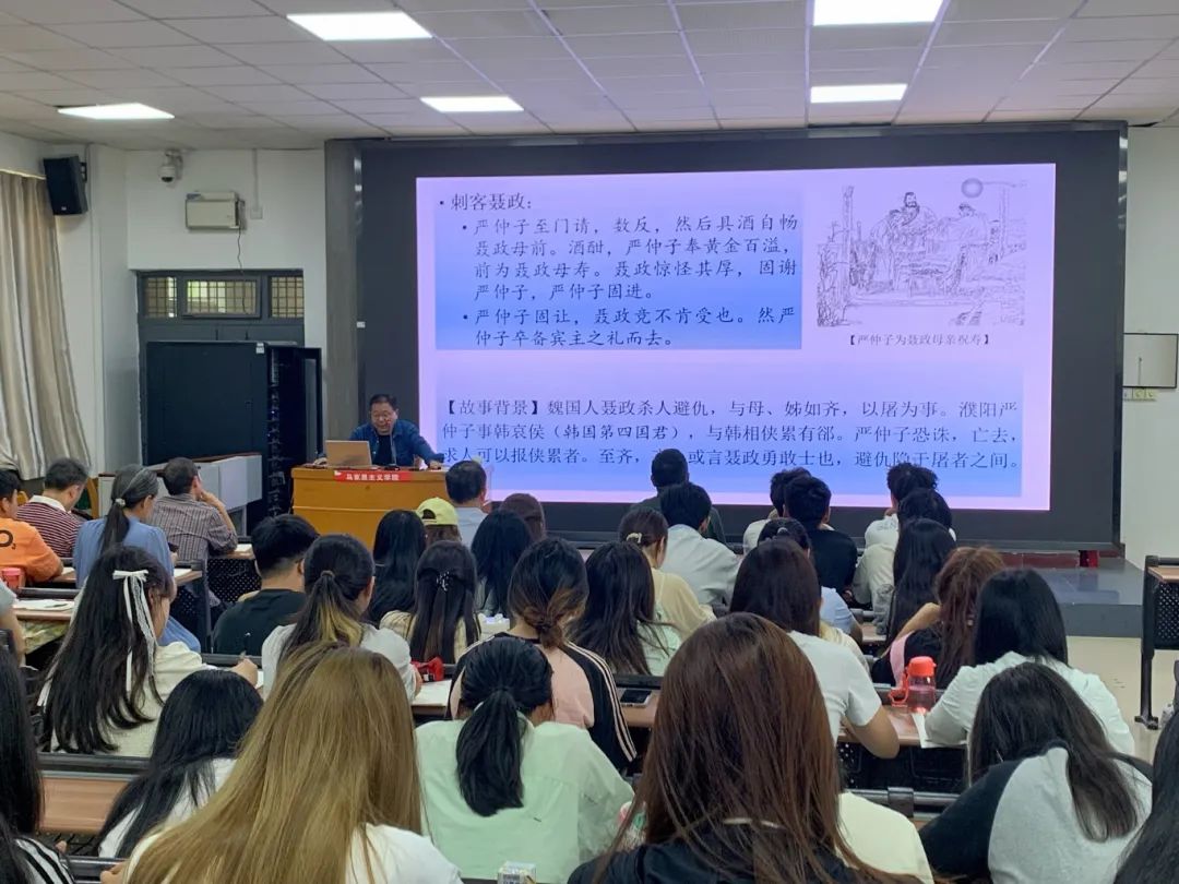6月6日上午,人文学院特邀著名古典文献学家,教授,博士生导师,中国历史文献学会理事张三夕,在博识楼1101教室为2023级汉语言文学专业近100名学生带来了一场题为“如何研究《史记》类传——《刺客列传》解读”的专题讲座。讲座由学院凌朝栋教授主持。
