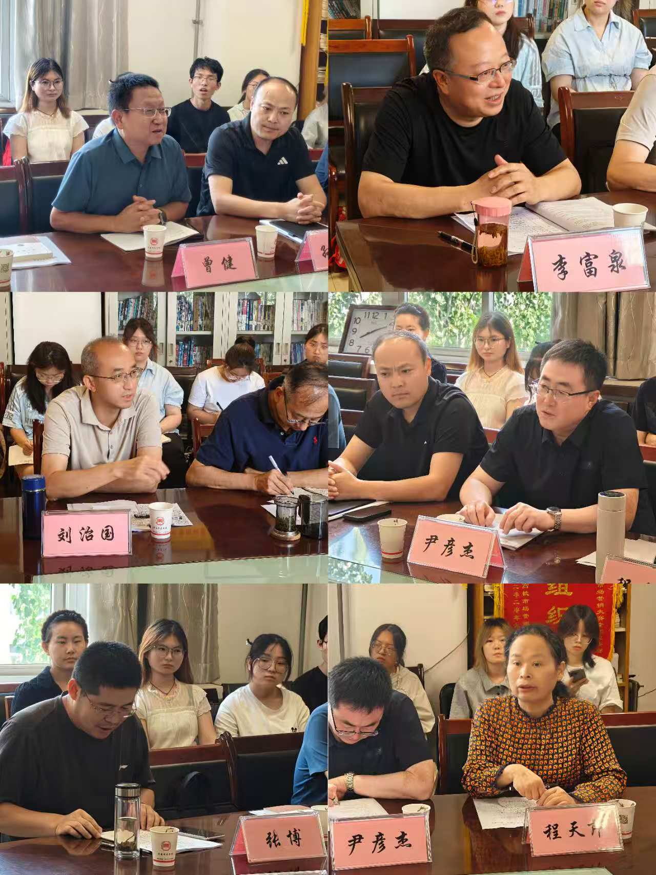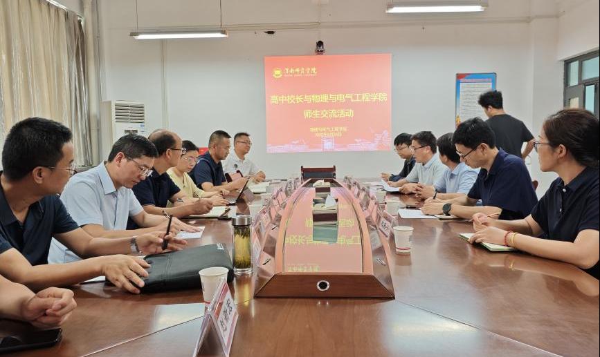 6月26日下午,物理与电气工程学院邀请西安市育才中学书记贺蓬勃、旬阳中学党委书记霍良平、子长市中学校长刘晓茹、眉县槐芽中学校长张林平、延长县高级中学校长赵新宏、陕西咸阳中学副校长程军刚、商洛市洛南县第二高级中学副校长张卫平、陕西省靖边中学副校长张永好等八所高中校长与学院师生座谈。学院党总支书记袁卫、院长秦玉伟、党总支副书记权轻舟、副院长郭宝会、何冰,以及物理系师生代表40人参加座谈会。会议由副院长郭宝会主持。