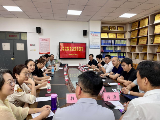 6月26日下午,陕西省多所高中的校长代表与教育科学学院的师生代表齐聚一堂,围绕基础教育与师范人才培养等关键议题进行了深入探讨。教育科学学院院长李西彩、副院长马雅菊、樊忠涛、刘峰,专业负责人、教师代表以及学生代表参加座谈会。
