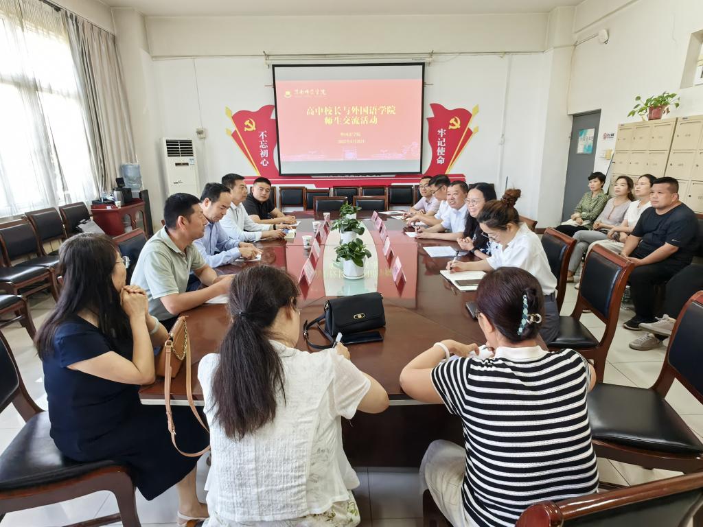 活动伊始,校长们结合各校实际,分享高中英语教学经验与挑战,指出对兼具扎实专业知识、创新教学方法和课堂应变能力的高素质英语教师的迫切需求。学院教师围绕高中教学模式、师资队伍建设、教材选用、学科建设和人才培养等与校长们进行了交流,为优化师范生培养方案,后期持续合作奠定基础。