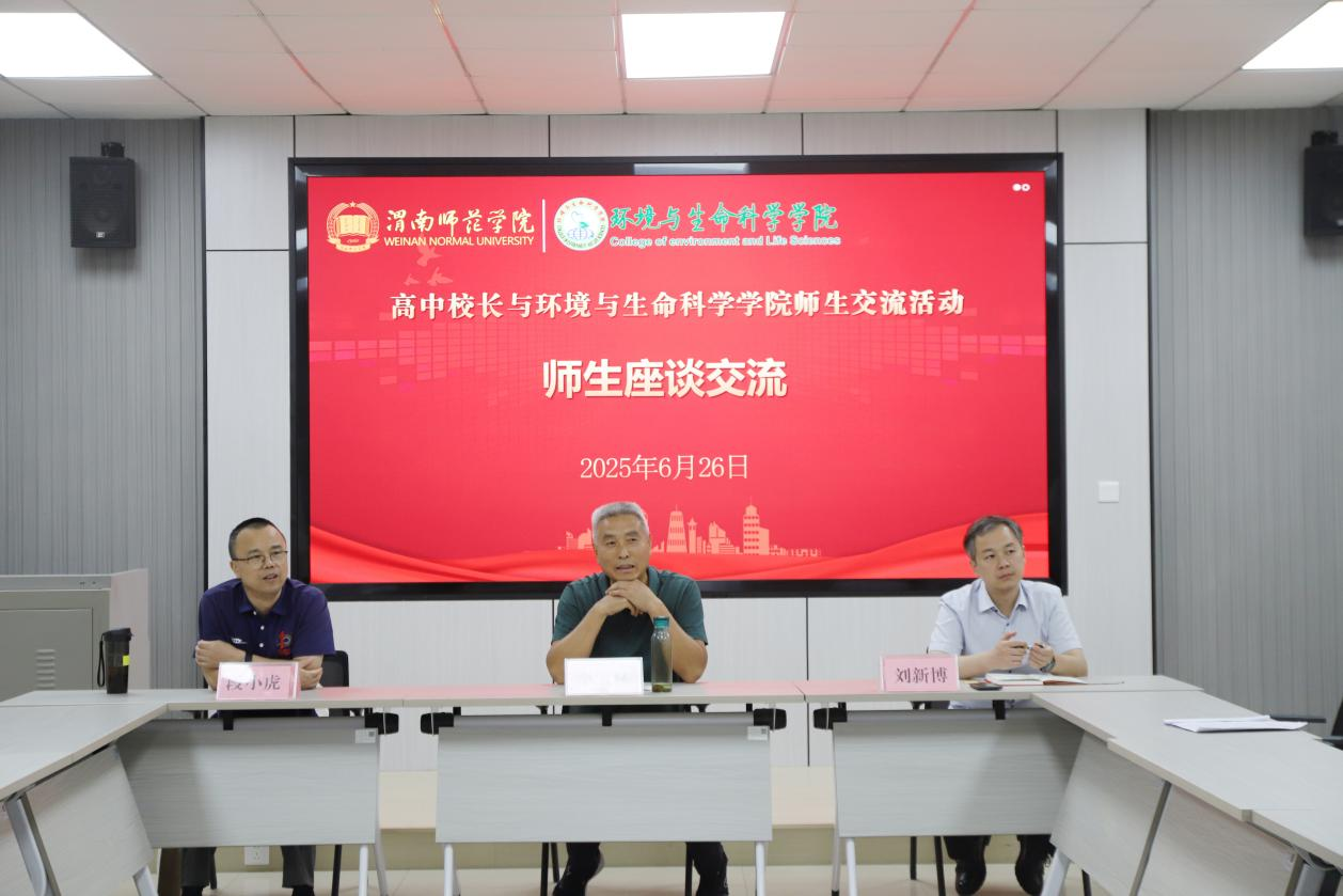 6月25日,高中校长与环境与生命科学学院师生交流活动于第一培训室顺利举行。咸阳渭城中学副校长段小虎,西安高级中学副校长刘新博,汉中市陕飞一中副校长李宝林,学院党总支书记魏睿,院长吴逸群,党总支副书记、副院长刘龙飞,副院长蒋缠文,相关专业负责人和生物科学专业、地理科学专业100余名学生代表参加活动,活动由蒋缠文主持。
