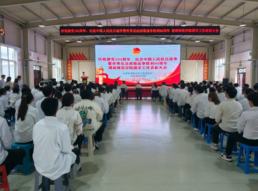 6月30日下午,我校在渭师青年之家召开庆祝建党104周年、纪念中国人民抗日战争暨世界反法西斯战争胜利80周年渭南师范学院团学工作表彰大会。