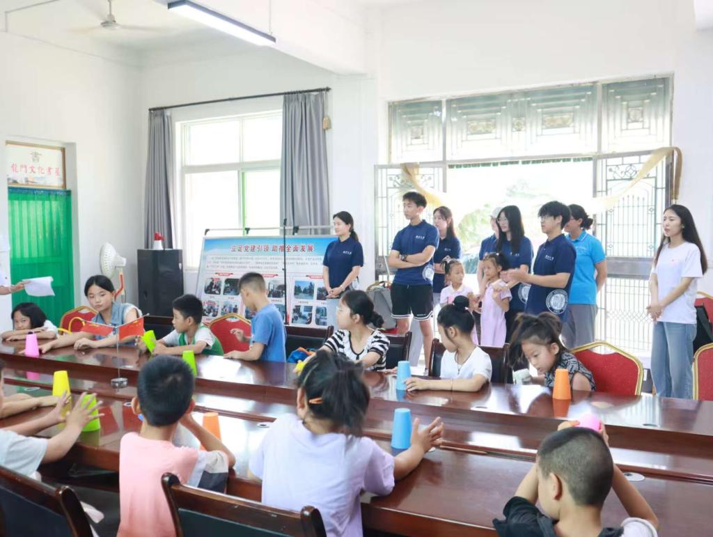 在观摩了教学现场后,我校社会实践团的带队教师张洁荣分享了实践团在龙门村开展的“三下乡”活动内容:学子们结合自身专业特色,在村里开展支教活动,为孩子们辅导功课、拓展知识面;深入田间地头,调研当地产业发展的现状,并为村里的高考毕业生家庭普及了大学生资助政策等方面内容。