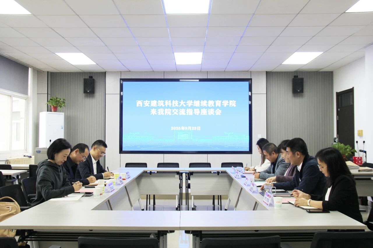 任建国介绍了西安建筑科技大学继续教育学院的基本情况与办学经验,并用“变化大、思路新、影响广”对我校继续教育发展成效给予高度评价。他表示,希望以此次交流为契机,建立常态化沟通机制,在项目合作、资源共享、经验互鉴等方面开展深度合作。孙小刚结合分管工作分享了该校在继续教育领域的具体实践与创新举措。双方还围绕继续教育发展趋势与合作模式创新等内容进行了深入交流。