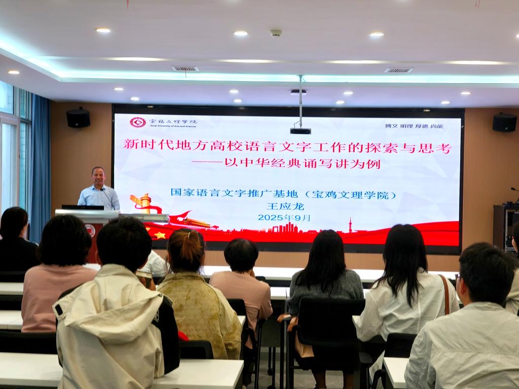 为了丰富推普周宣传活动,9月18日下午,学校邀请国家语言文字推广基地(宝鸡文理学院)执行主任王应龙教授来校作题为“新时代地方高校语言文字工作的探索与思考——以中华经典诵写讲大赛为例”的专题讲座。