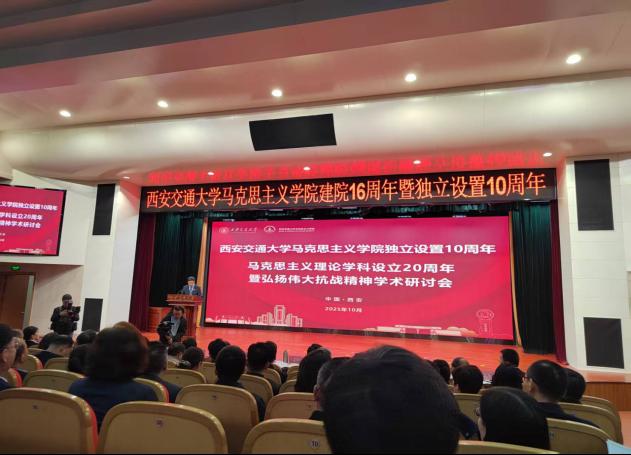 10月18日,由中共中央党史和文献研究院第四研究部指导,西安交通大学马克思主义学院联合多家研究基地与学术期刊编辑部共同主办的“马克思主义理论学科设立20周年暨弘扬伟大抗战精神学术研讨会”,在西安交通大学马克思主义学院(兴庆校区)召开。我校马克思主义学院副院长单剑峰、青年教师覃景冠应邀参会。