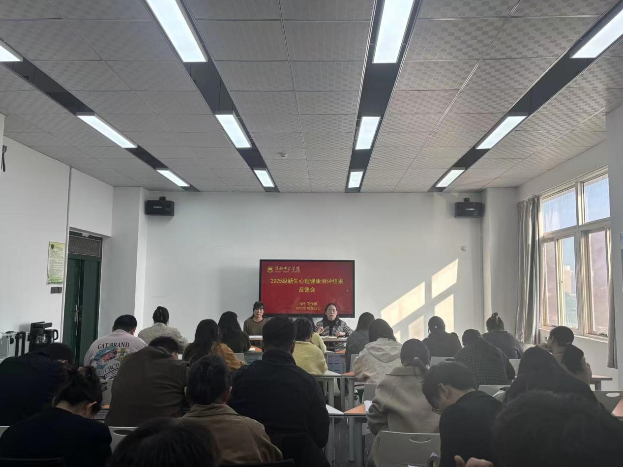 10月28日,学生工作部大学生心理健康教育指导中心在厚德楼团辅室召开2025级新生心理健康测评结果反馈会暨心理约谈培训会。2025级新生辅导员、心理专干及心理中心专职教师参加会议。