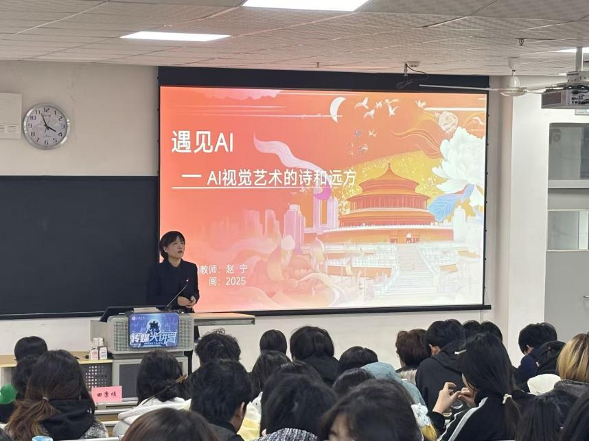 陕西直播产业研究院院长赵宁副教授以《AI视觉内容创作的诗与远方》为题,结合数字孪生、虚拟制片以及生成式人工智能等具体应用案例,介绍了AI在视觉创作中的实践成果,强调了技术与创意融合的重要性。