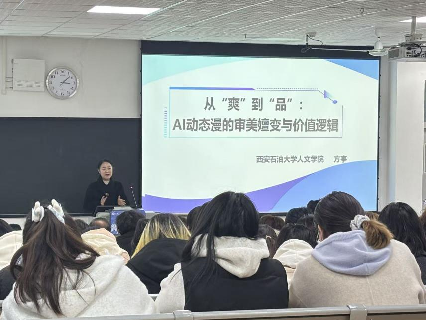 西安石油大学人文学院院长方亭教授在《从“爽”到“品”:AI动态漫的审美嬗变与价值逻辑》报告中,系统分析了AI动态漫的审美变迁历程,从技术、经济与文化三个维度对其价值重构路径进行了探讨,并提出“品风格、品叙事、品意境”的创作导向。