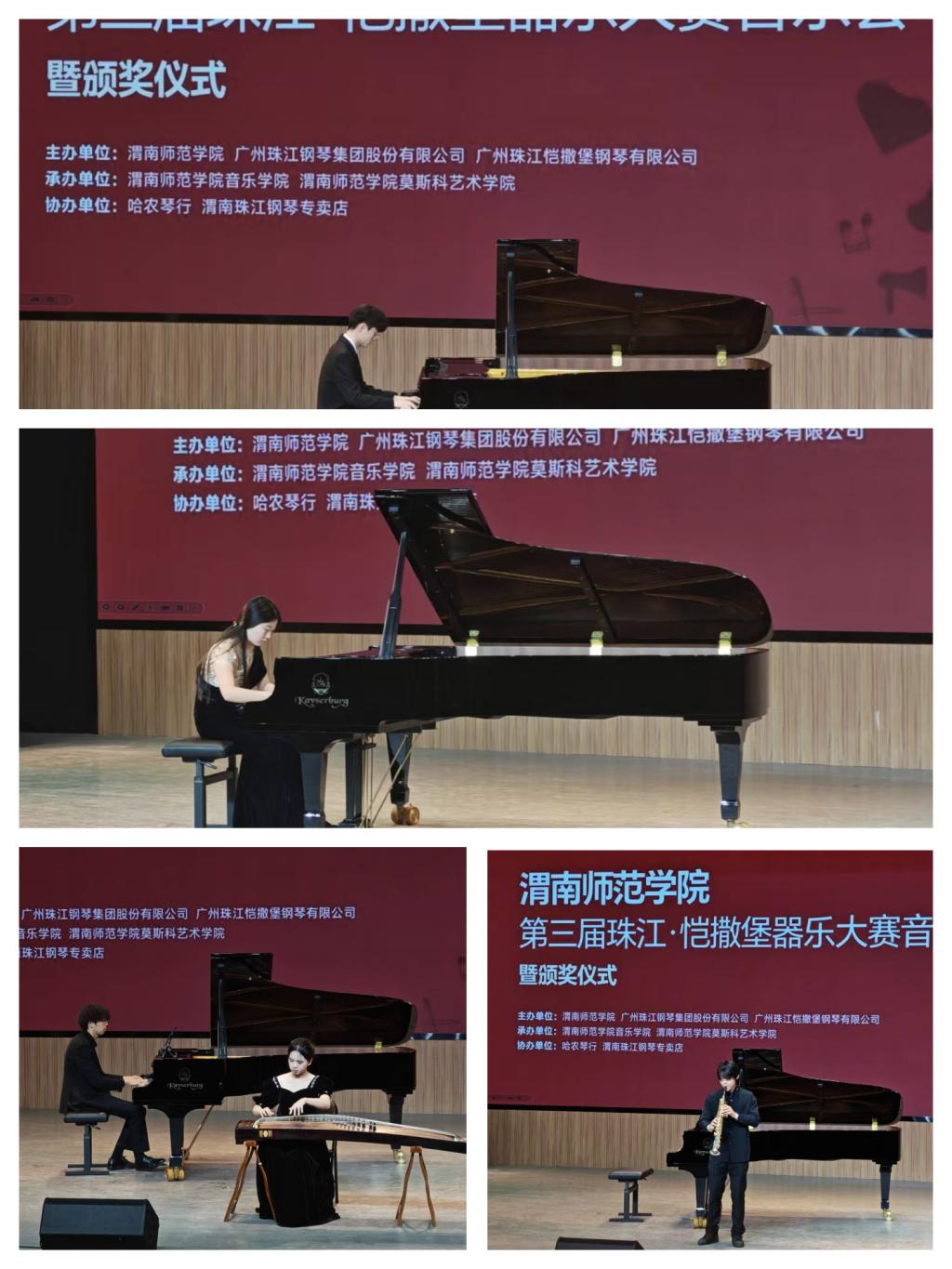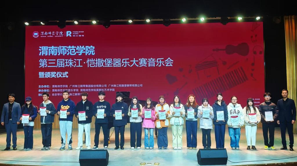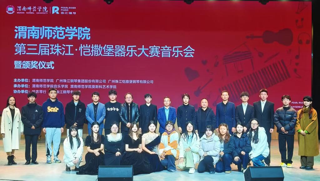 11月12日,第三届珠江·恺撒堡器乐大赛音乐会暨颁奖仪式在我校举行。广州珠江钢琴恺撒堡公司党委副书记、总经理李富龙,我校音乐学院党总支书记白锐,音乐学院副院长逯克刚,渭南市哈农琴行总经理李哲,渭南珠江钢琴专卖店经理张卓等出席活动 。