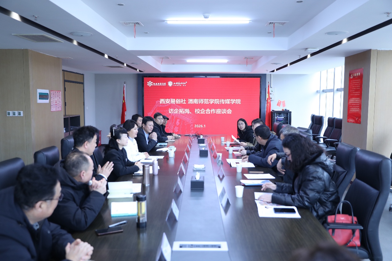 为深入贯彻落实教育部“访企拓岗促就业”专项行动部署,深化产教融合、拓宽毕业生高质量就业渠道,传媒学院开展了寒假期间访企拓岗行动。2026年1月20日,副校长蒋平江带队,学院党总支书记田康顺、院长林关成、党总支副书记周双、副院长侯君奕、戏剧影视美术设计专业负责人张鸽舞、动画专业负责人张小波等一行,赴西安易俗社、西安云遮月网络科技有限公司开展访企拓岗专项调研工作。