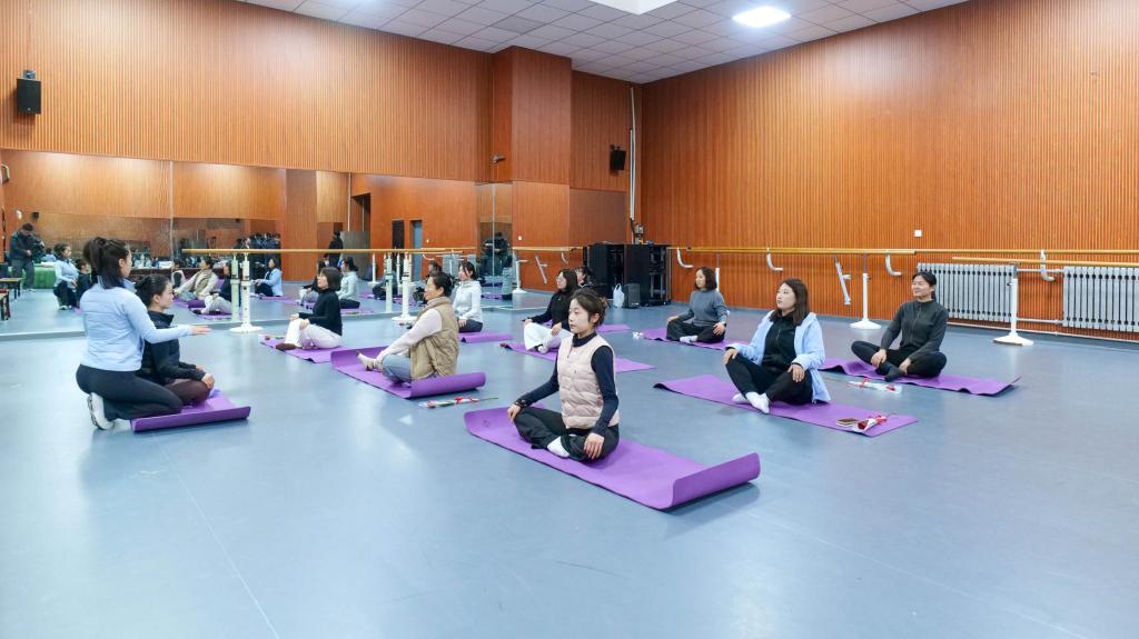 活动在温馨宁静的氛围中拉开帷幕。在专业教师黄璐老师的带领下,参与者身着舒适运动服,伴随着舒缓悠扬的音乐,逐步展开体式练习。从基础的呼吸调整到循序渐进的拉伸与放松,大家在宁静专注的状态中舒展身体、舒缓压力,在一呼一吸间感受内心的平和与力量。