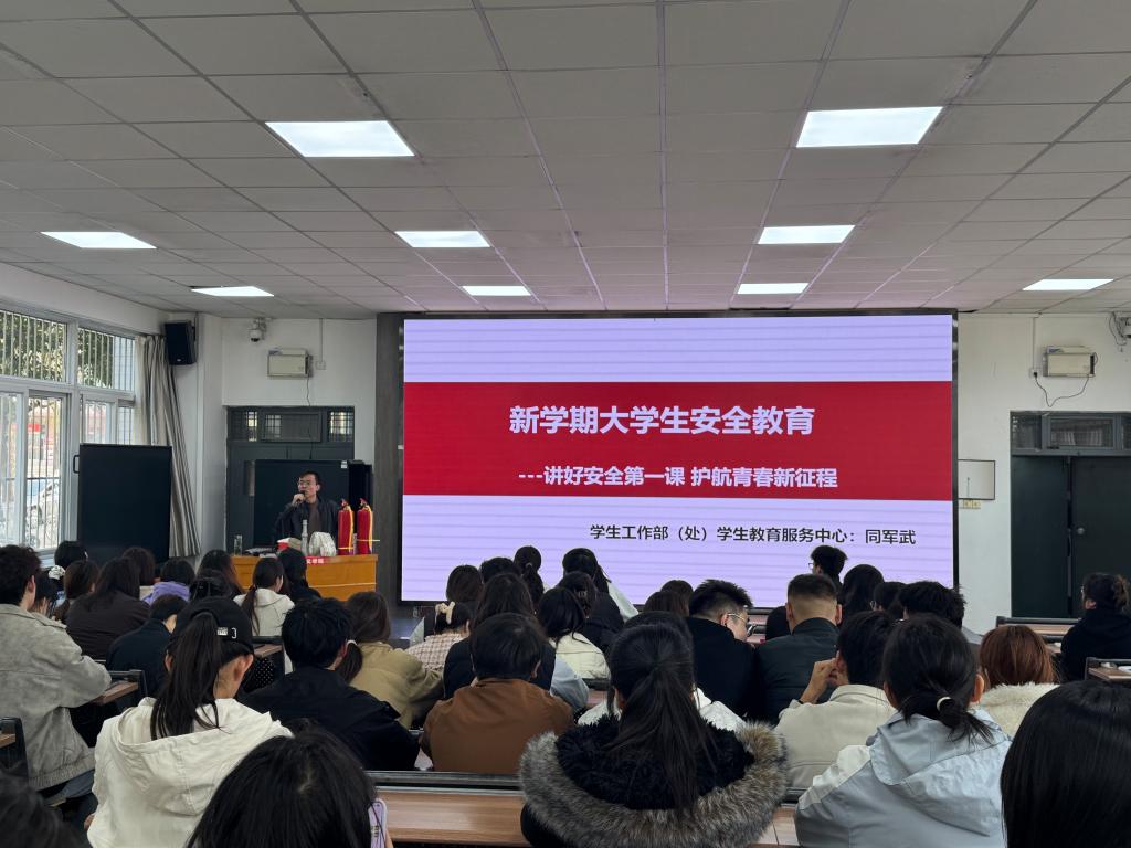 为深入贯彻总体国家安全观,落实学校关于新学期安全稳定工作的总体部署,坚持“生命至上、安全第一”的工作理念,切实增强我校学生的思想政治素养、法治观念和安全防范意识,有效预防各类安全事故和违法犯罪事件发生,3月11日下午,学生工作部组织开展新学期学生安全教育课,辅导员及学生代表等100余人参加。