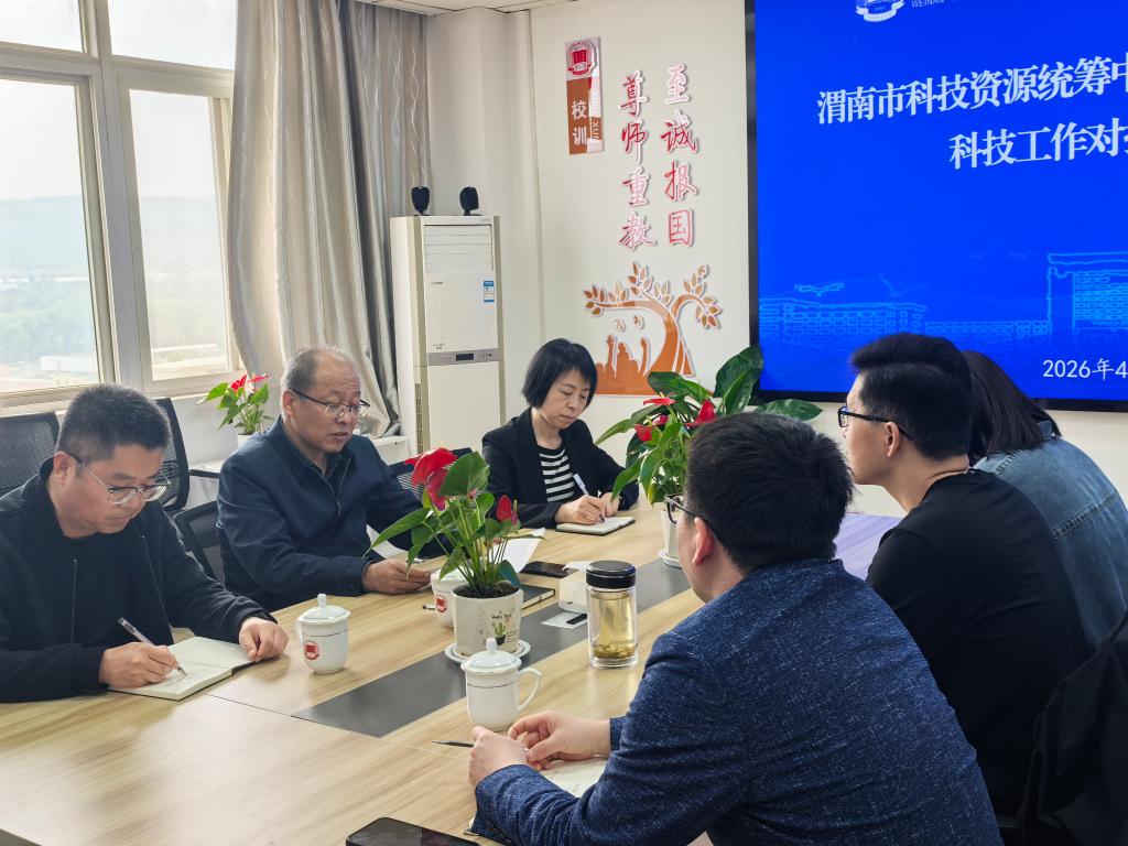 4月13日下午,渭南市科技资源统筹中心主任段作朋、副主任杜小玲一行莅临我校,与我校科学研究处开展专题座谈,对接落实校地科技合作重点工作。