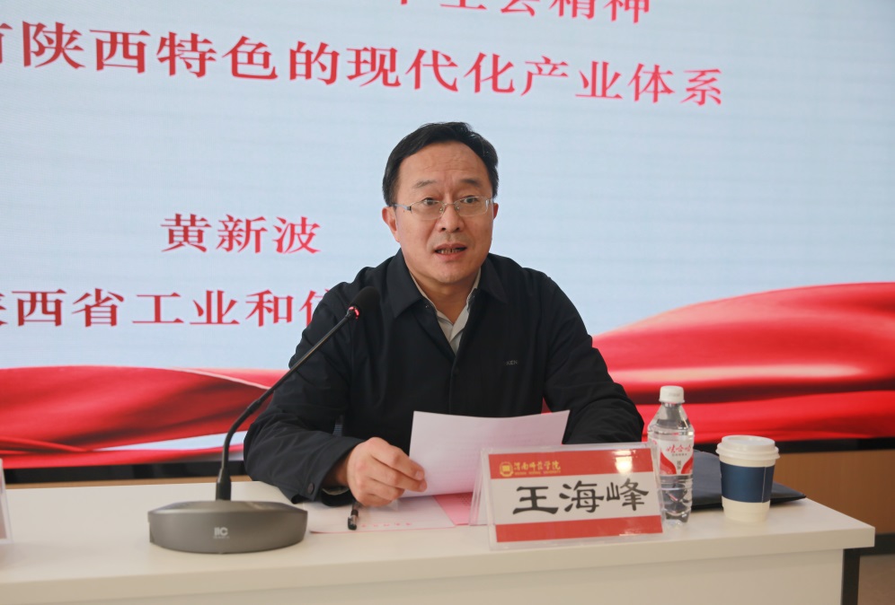 3月12日,陕西省数据和政务服务中心党组书记、主任黄新波教授应邀为我校作《贯彻落实党的二十届三中全会精神加快构建具有陕西特色的现代化产业体系》的专题报告,党委委员、副校长曹强参加报告会,报告会由党委委员、副校长王海峰主持。