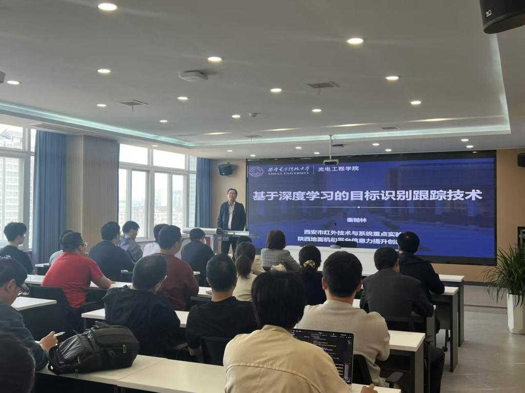 秦翰林教授从人工智能、深度学习、基础知识与技术拓展、经典检测与跟踪算法、模型开发与嵌入式系统部署等6个方面对其团队的科研工作做了详细的介绍。报告会后,物电学院相关博士及学生就深度学习相关的最新研究动态与秦教授进行了交流。