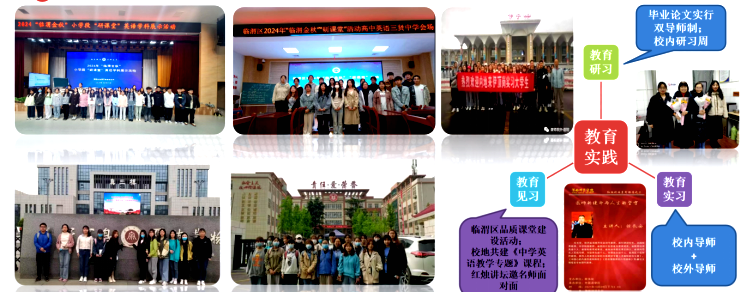 “三课堂联动”:第一课堂、第二课堂和第三课堂“多元协同、立体联动”的育人路径。第一课堂不断优化课程设置、深化课程改革,形成了较为合理的课程体系平台,建构了“通识教育课程+人文素养课程+专业基础课程+专业拓展课程+教育实践课程”五大课程群;第二课堂搭建师范生职业技能训练提升平台,通过表达能力培养、书写技能训练、语言技能强化、教师技能拓展、信息技能开发、职业生涯规划指导等多元活动,全面提高学生的教师教育能力;第三课堂通过教育实践、社会实践等各类实践活动,全面提升学生的综合素养。