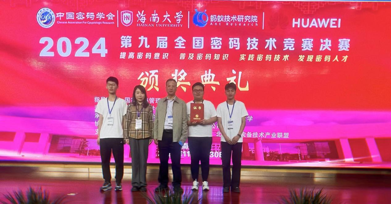 11月28日至30日,由国家密码管理局指导、中国密码学会主办的第九届全国密码技术竞赛决赛在海南大学举办。我校代表队在激烈的较量中脱颖而出,最终荣获全国三等奖。