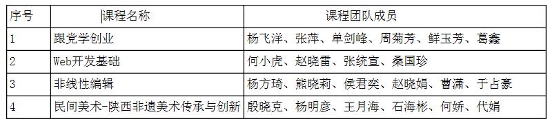 近日,陕西省教育厅发布了《关于公布2023年度陕西高校创新创业教育在线开放课程立项建设名单的通知》(陕教高办〔2023〕40号),我校4门课程获批立项。