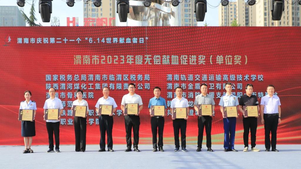 近日,渭南市庆祝第21个“世界献血者日”主题活动在渭南市中心广场举行。渭南市政府副市长刘宝琳致辞,并为获奖单位及个人颁发感谢状。