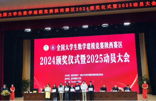12月20日,全国大学生数学建模竞赛陕西赛区2024年颁奖仪式暨2025年动员大会在西安明德理工学院举行,我校蒲柳君、姜悦、辛鹏三位同学组成的参赛团队荣获全国二等奖,这是我校近五年来获得的第5项全国奖,学校连续四年获评优秀组织工作单位,此外我校学子还获得陕西省一等奖6项、二等奖12项的好成绩。