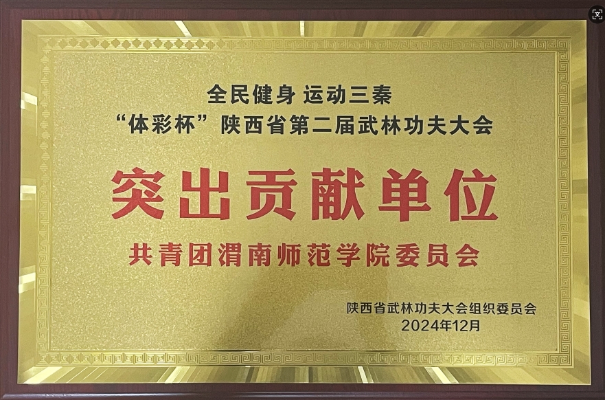 近日,由陕西省体育局、渭南市人民政府主办,陕西省武术运动管理中心、渭南市体育局承办的“体彩杯”陕西省第二届武林功夫大会在渭南市体育运动中心体育馆隆重上演,赛事组委会授予学校“突出贡献单位”。