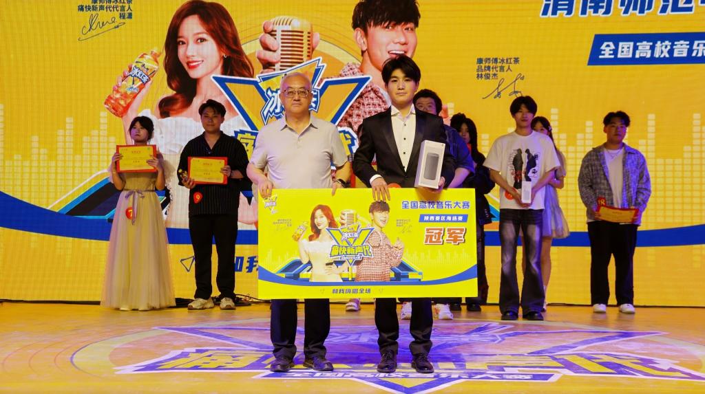 本次大赛由康师傅独家冠名,历经初赛、复赛长达一个月的激烈角逐,来自马克思主义学院、教育科学学院、化学与材料学院等院系的20位实力唱将脱颖而出,站上决赛舞台。舞台之上,选手们各展所长:有人以深情嗓音诠释动人情歌,声声倾诉触动心灵;有人用激昂旋律唱响励志金曲,满腔热忱点燃全场。他们用歌声诉说着对音乐的赤诚热爱,更饱含着对母校65周年校庆的美好祝愿。现场灯光绚烂交织,震撼音效萦绕耳畔,观众们的欢呼声、掌声如浪潮般此起彼伏,将现场氛围一次次推向高潮。评委们秉持专业态度,从音准把控、节奏把握、情感传递等多个维度审慎评判,确保赛事公平公正、专业权威。最终,刘博文凭借卓越表现斩获金奖,李佳拯荣获银奖,童彬摘得铜奖,柯心怡等9名同学获得优秀奖。
