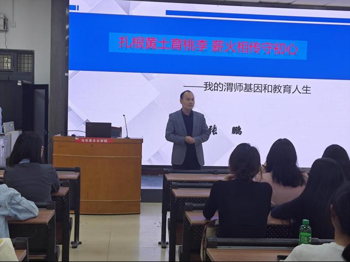 5月9日下午,马克思主义学院邀请渭南师范学院2003级思想政治教育专业毕业生、潼关县优秀团务工作者、潼关县高考质量提升先进个人、渭南市中小学教师中、高级评审委员会评委、渭南市教育学会理事,渭南市高考政治学科试题评价分析讲师团成员、潼关中学副校长张鹏老师来我院作题为《扎根黄土育桃李 薪火相传守初心》的报告。马克思主义学院部分教师、思想政治教育专业2022级学生等100余人参加,思想政治教育专业建设负责人周菊芳主持。