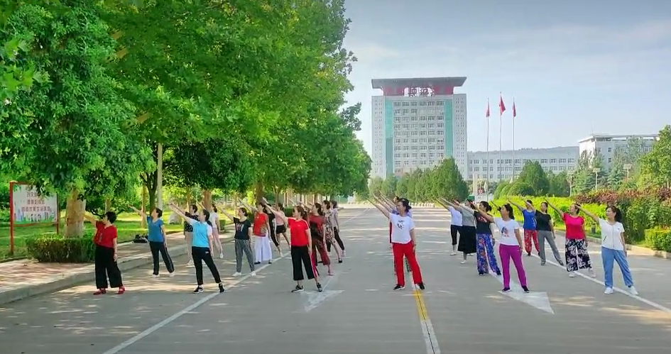 我校师生表演的开场节目健身排舞《全健排舞大家跳》《没有共产党就没有新中国》,由校工会副主席杨秀香教授担任队长,体育学院史红梅副教授担任教练,共34名师生组成展演团队。
